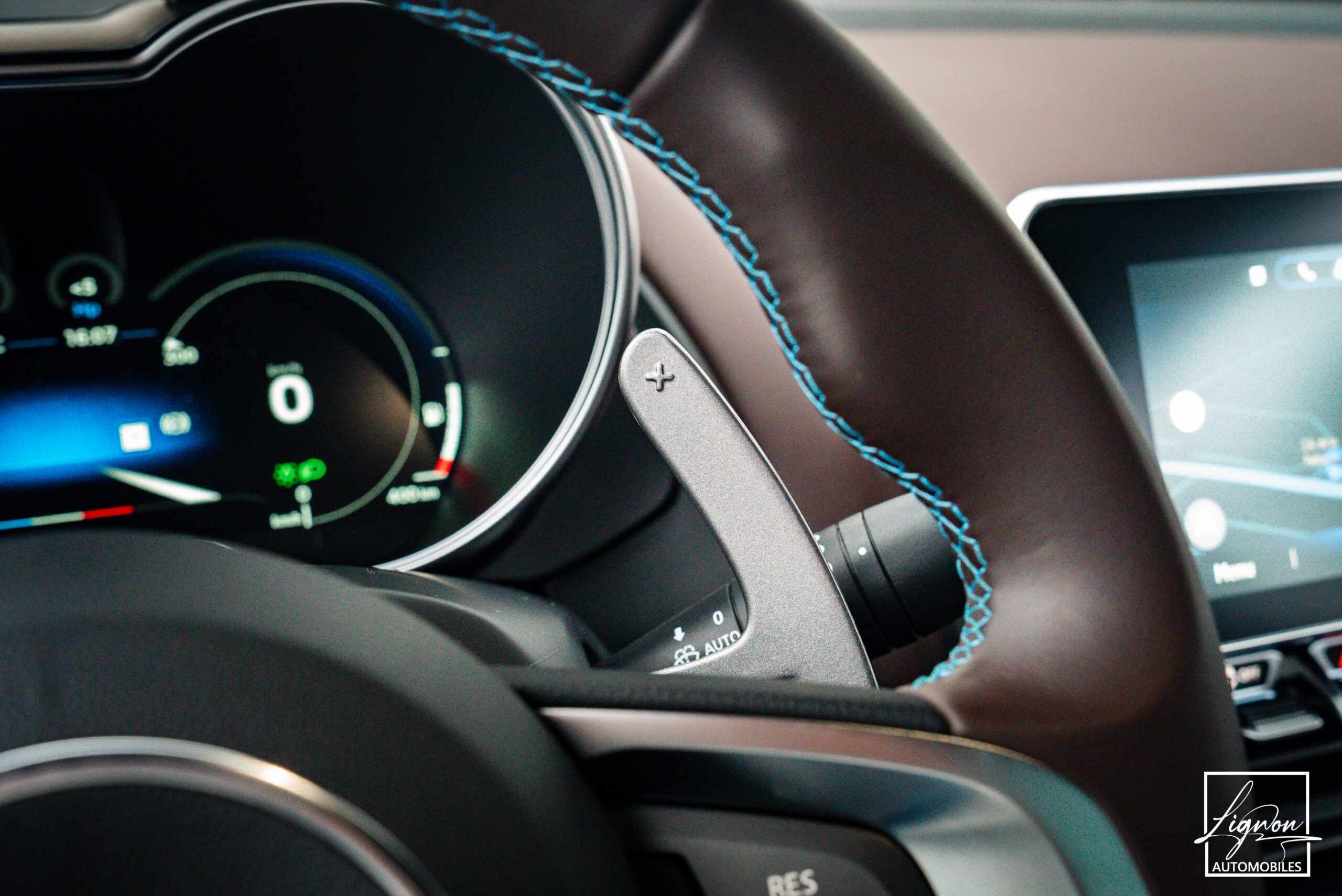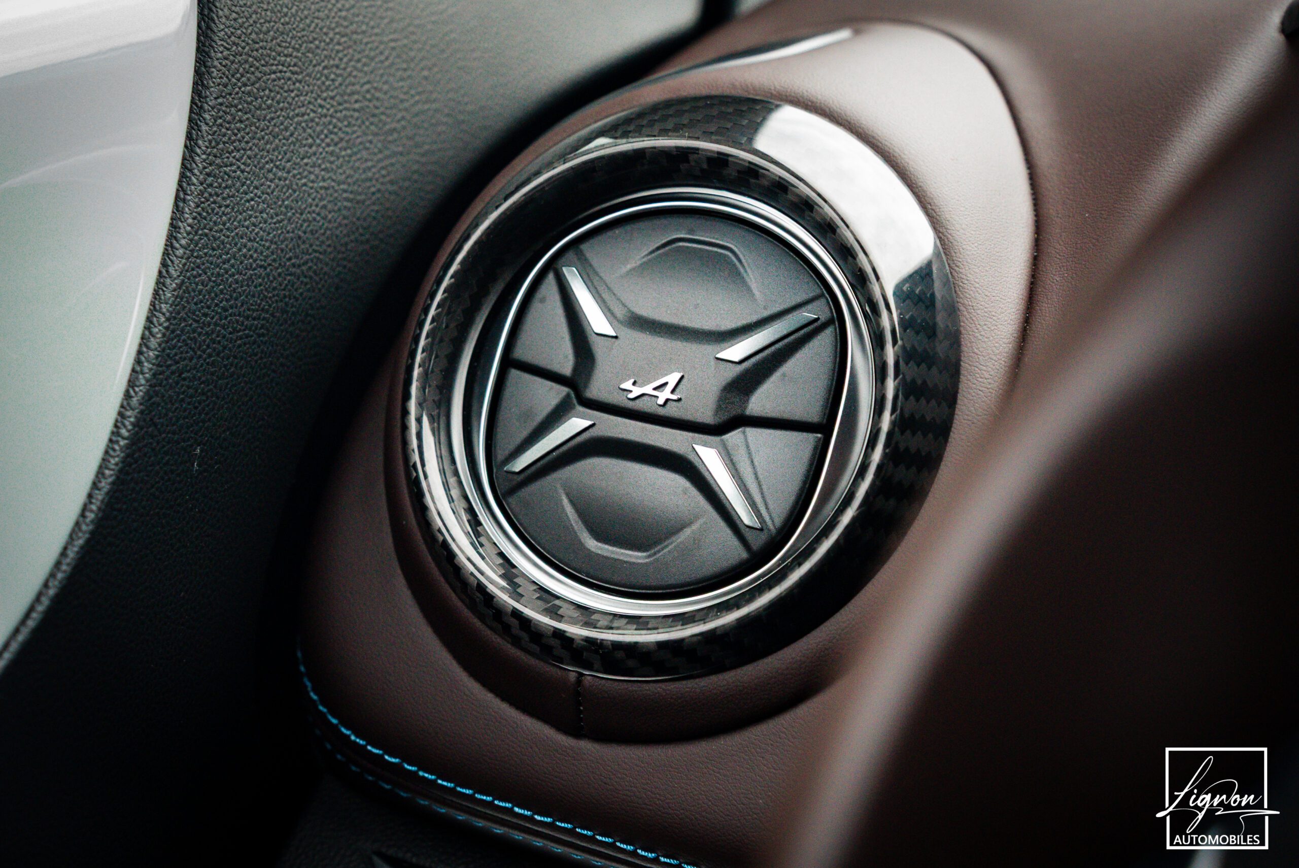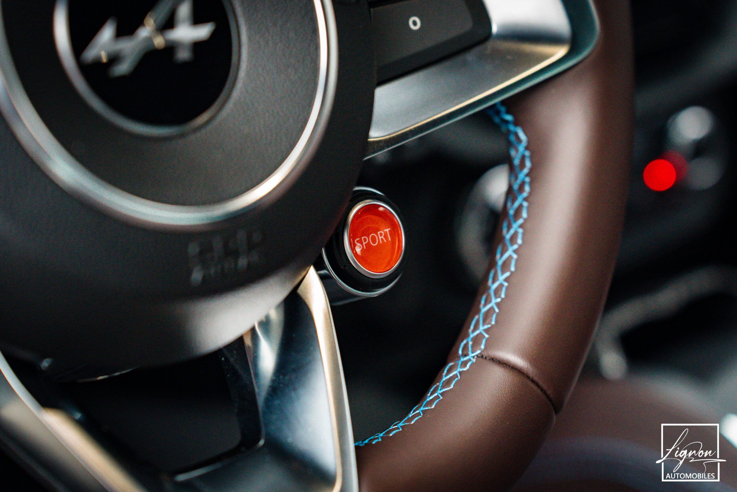 Logo au centre du volant en Noir Alpine