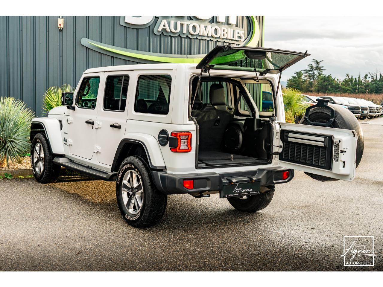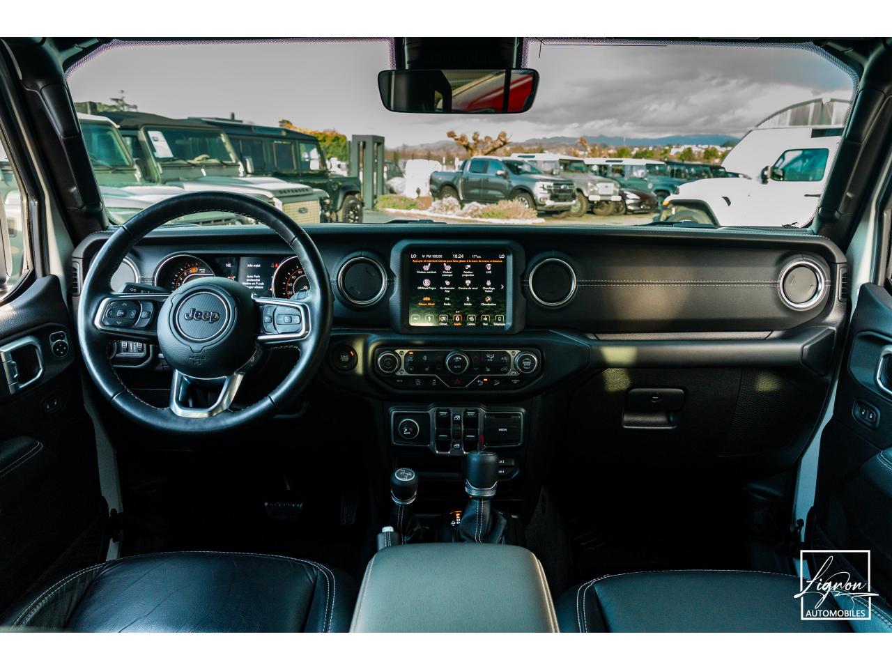 Jeep Wrangler JL Unlimited Sahara, équipé du moteur 2.0 Turbo 272 ch et boîte automatique BVA8. Un 4×4 iconique alliant puissance, confort et capacités tout-terrain exceptionnelles, idéal pour les aventuriers comme pour un usage quotidien.