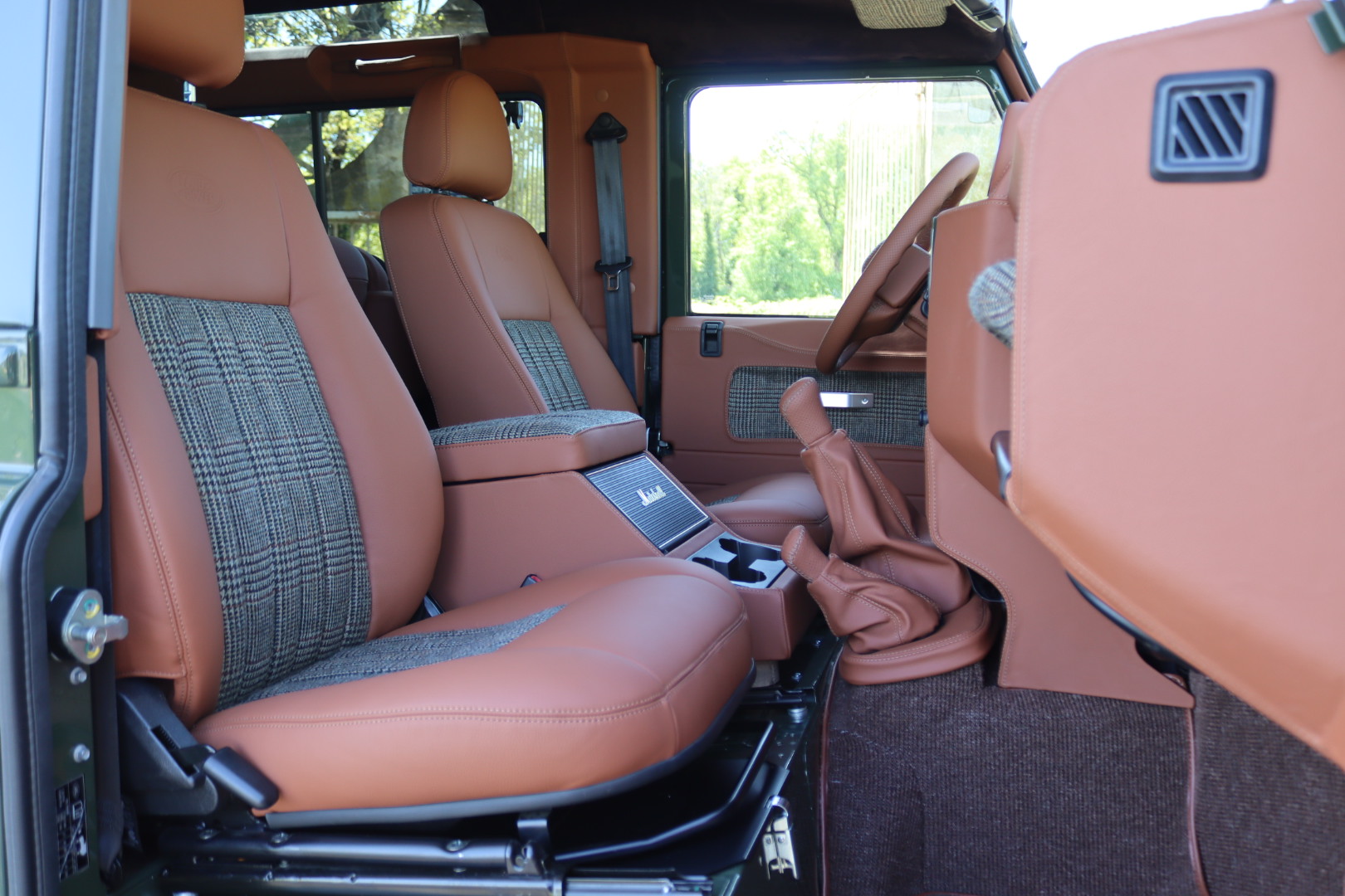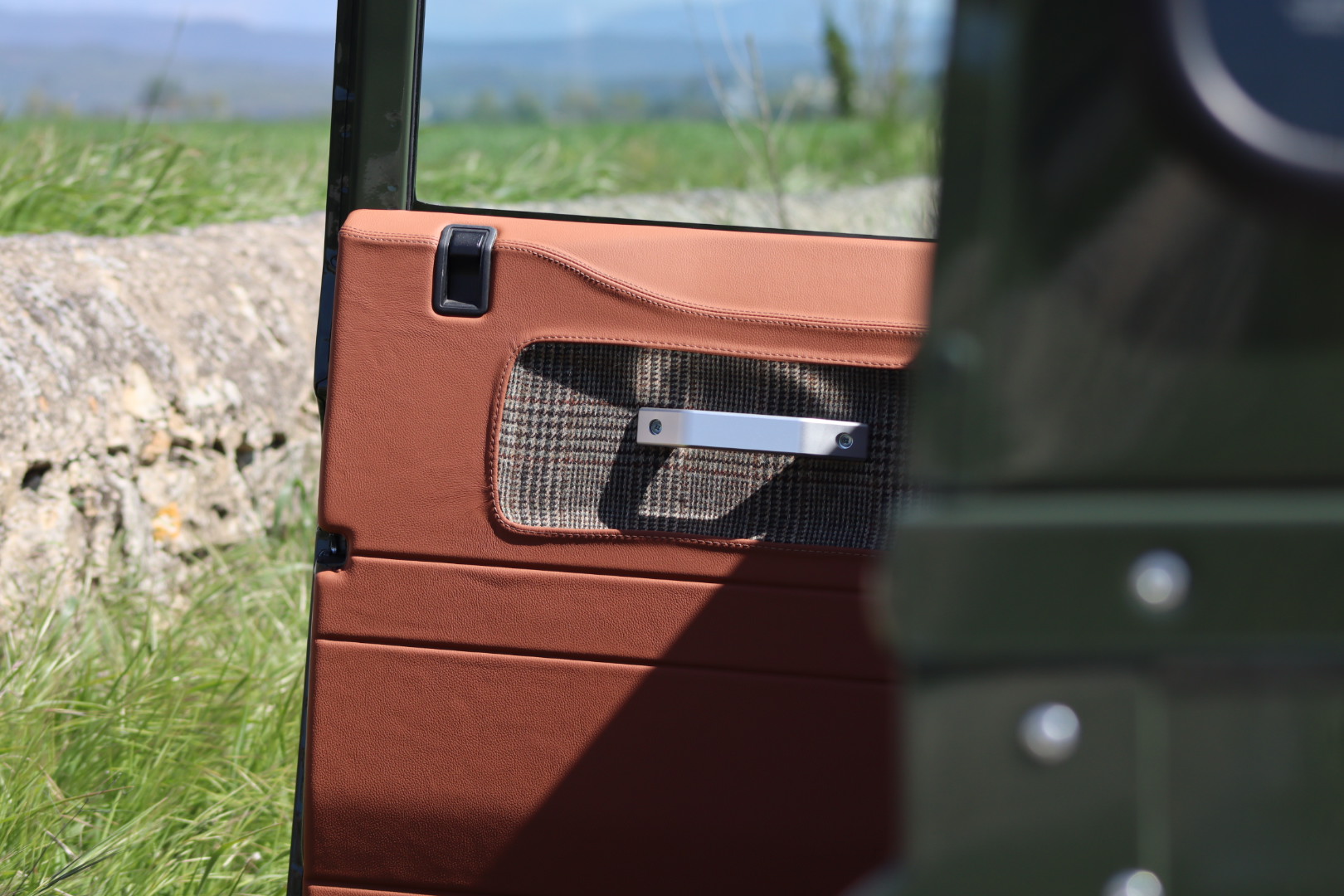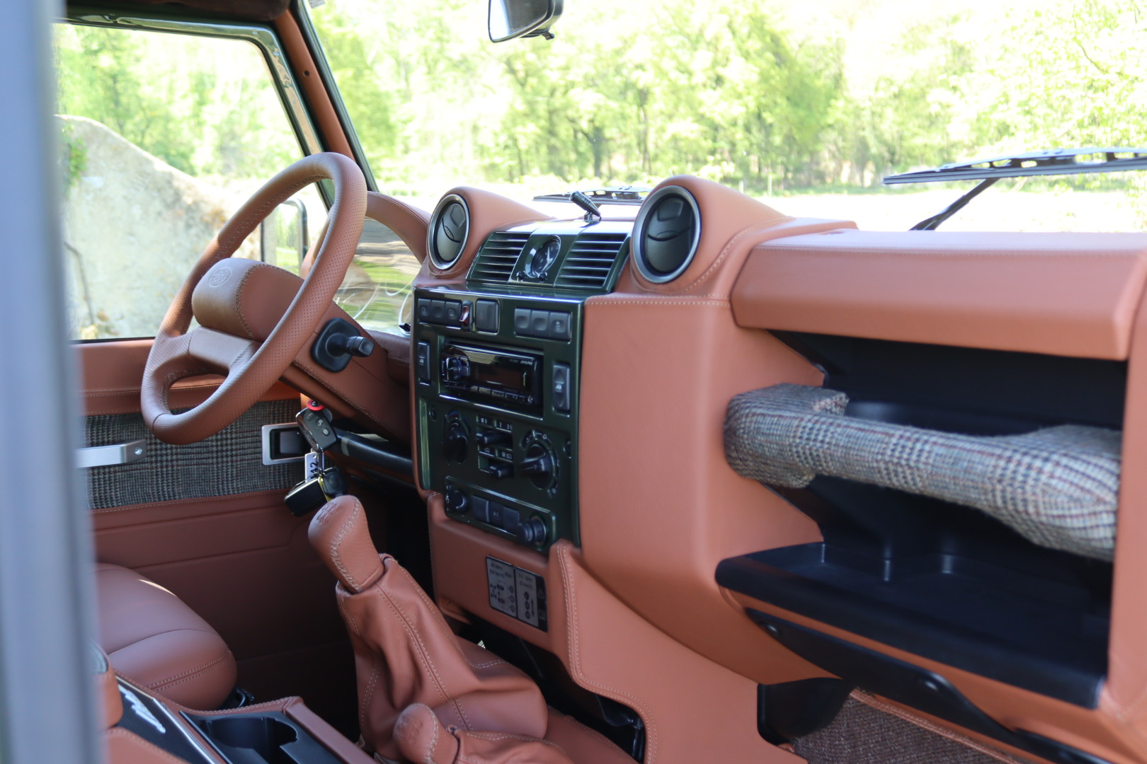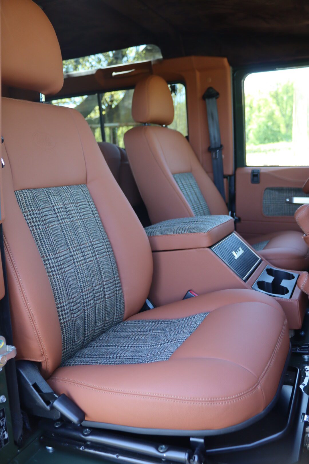 – Interieur en cuir Havane et Green Glen Check Tweed