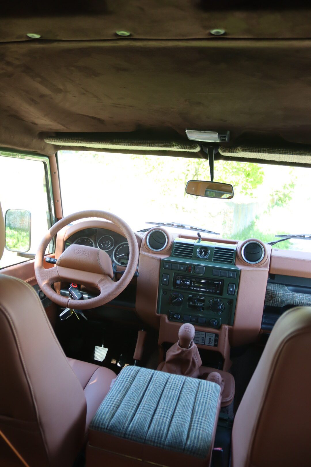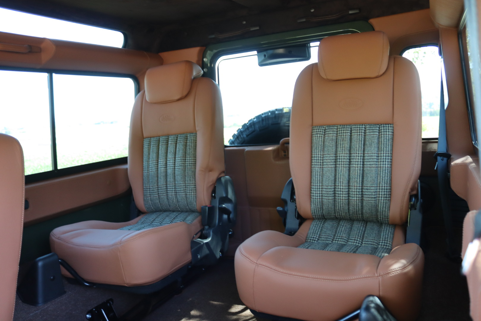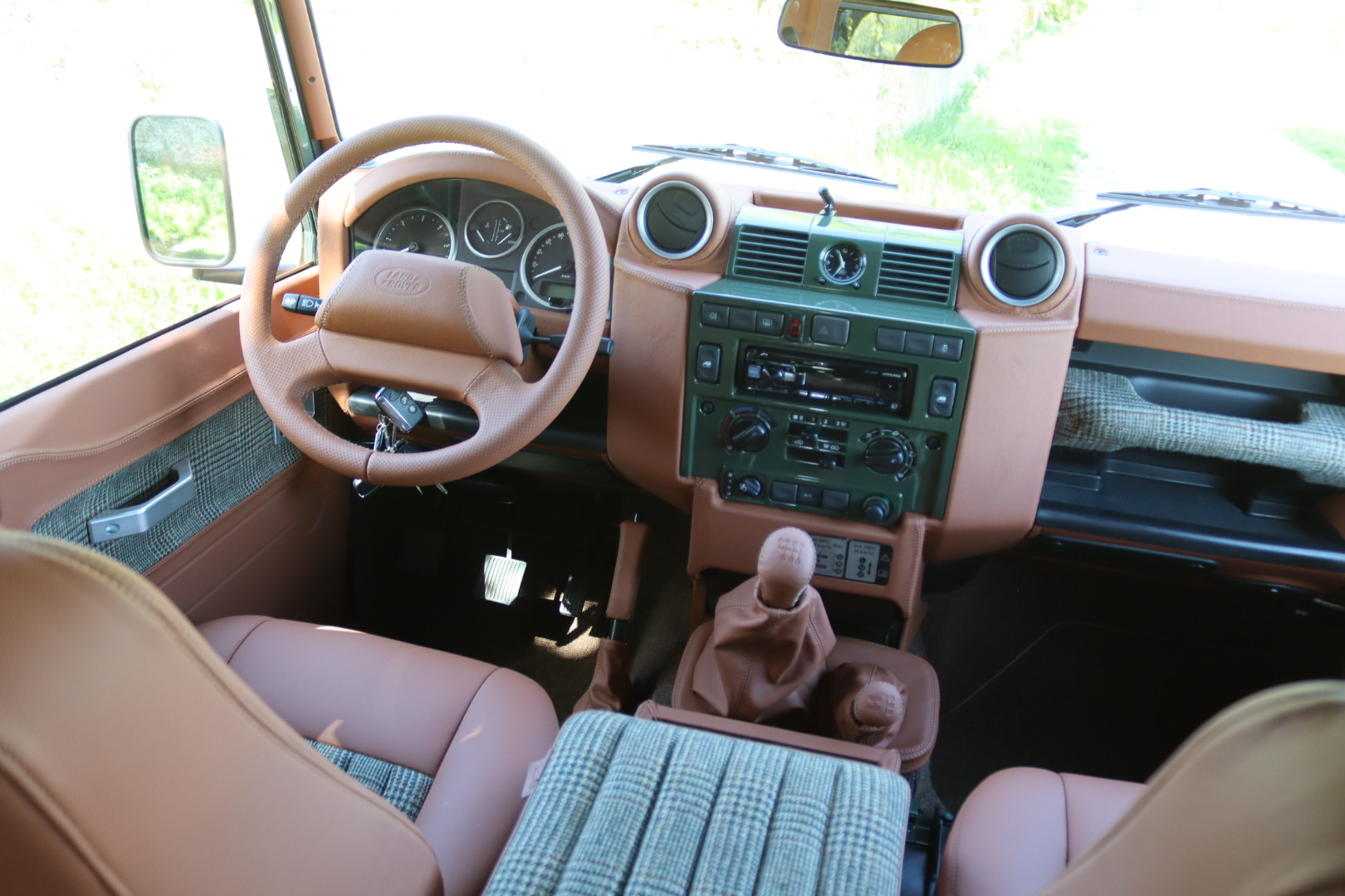 – Interieur en cuir Havane et Green Glen Check Tweed