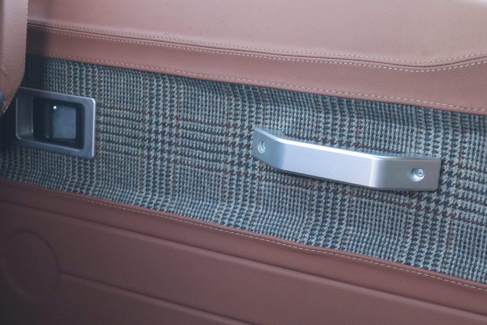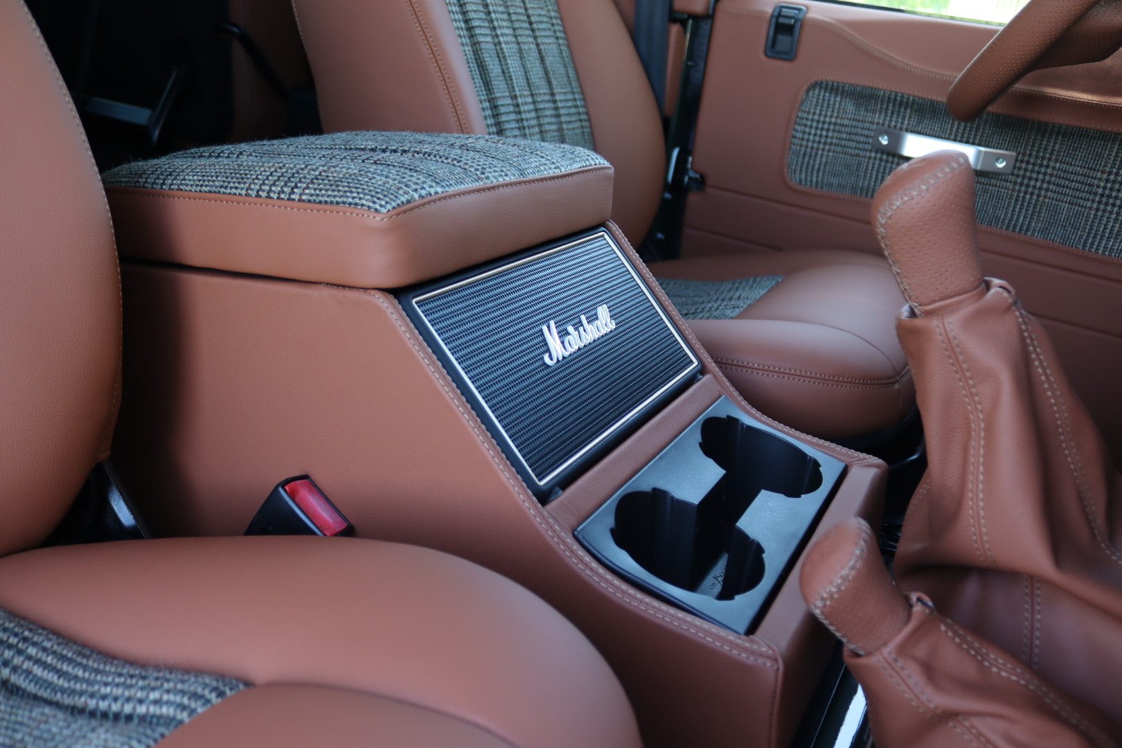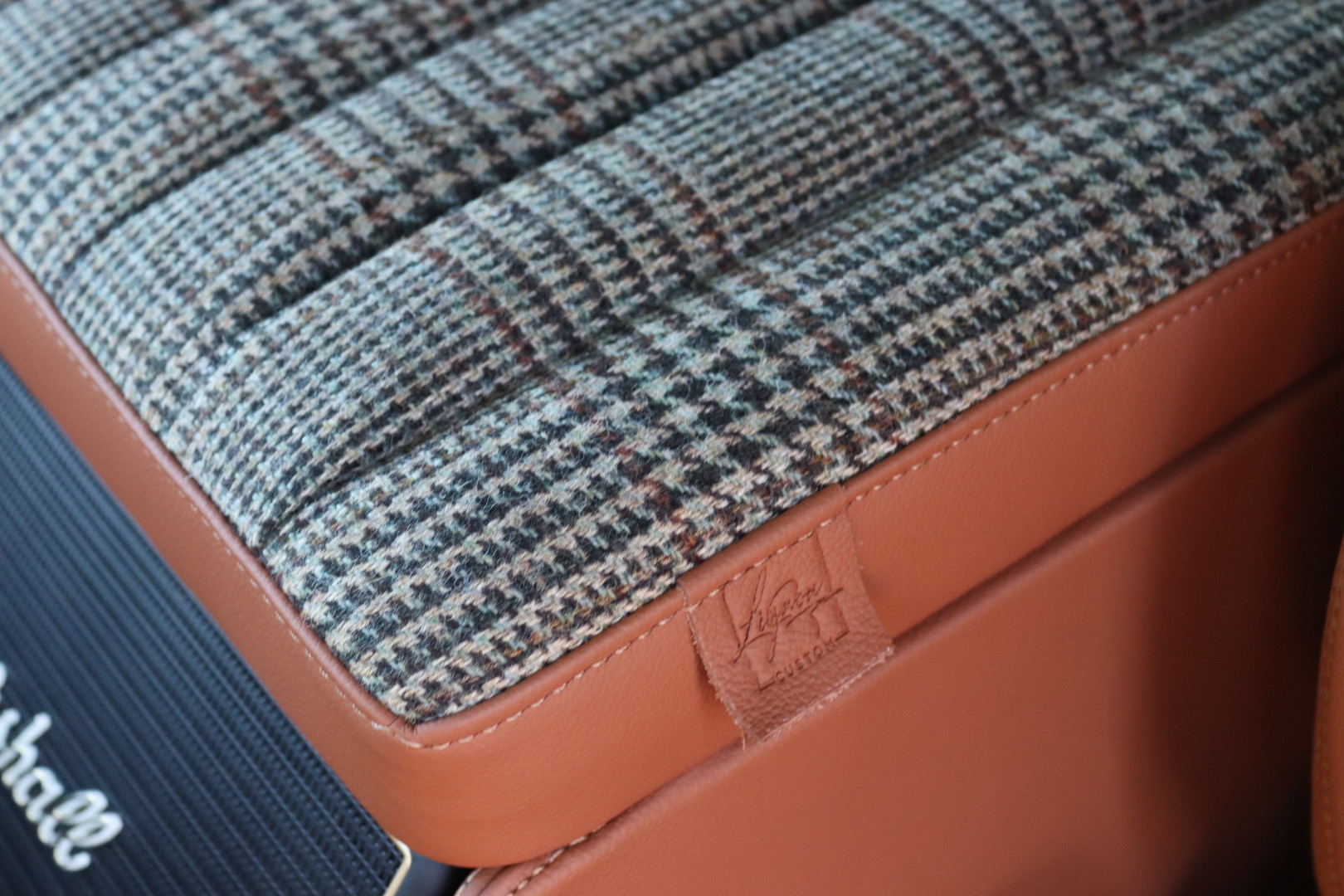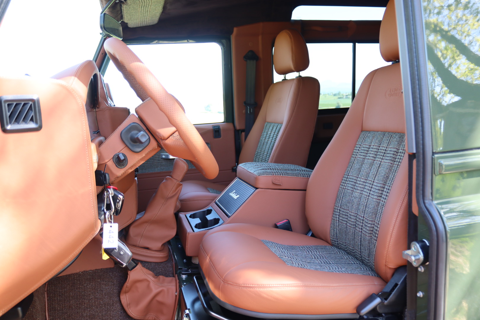 – Interieur en cuir Havane et Green Glen Check Tweed